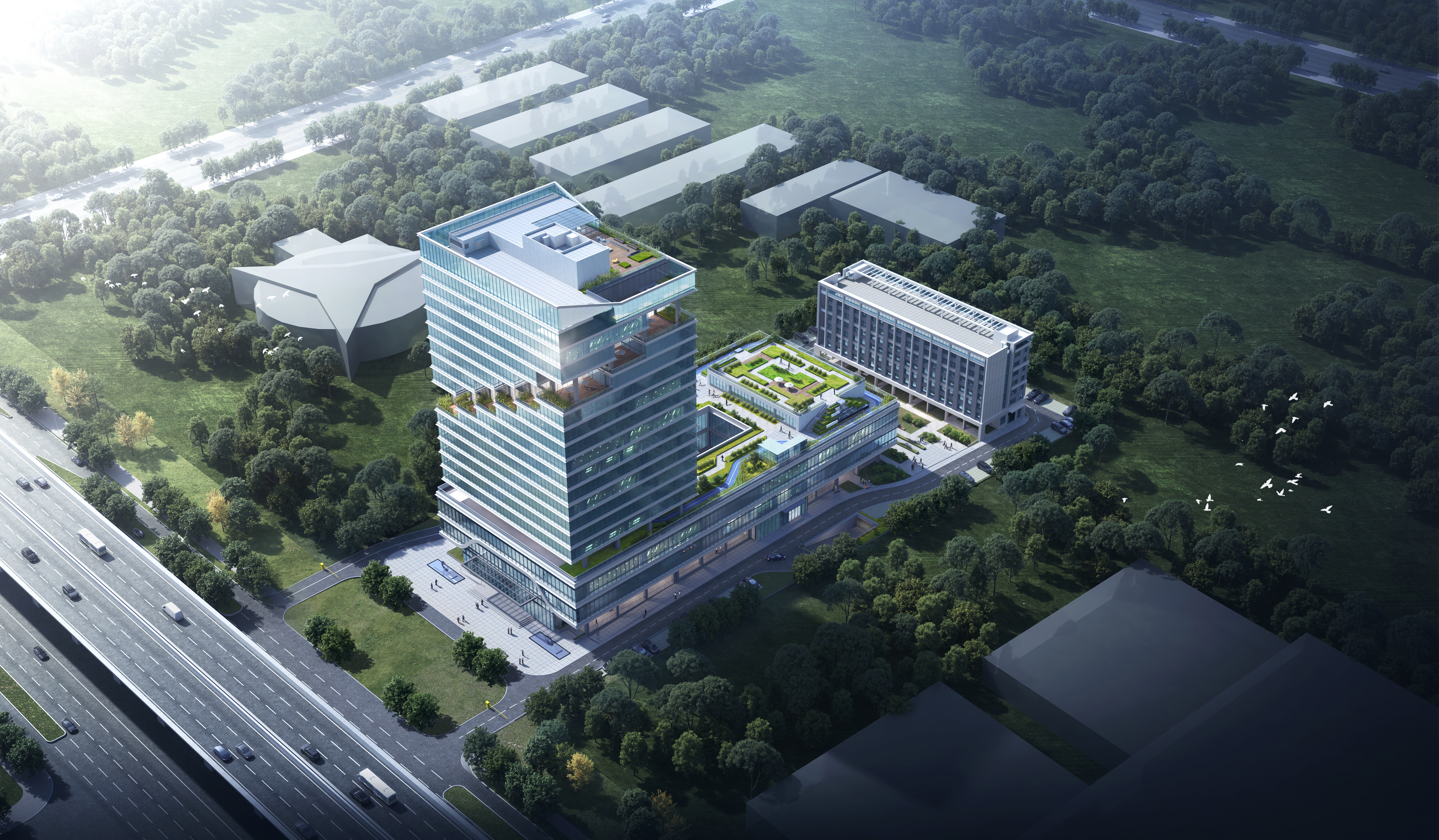 财富趋势金融科技第二总部项目位于武汉市东湖高新技术开发区光谷大道以北、流芳路以西。项目总用地面积约1.73万平方米,总建筑面积约6.67万平方米。建设规模包含1#楼厂房(19层塔楼+3层裙房,建筑面积约4.77万平方米),2#楼宿舍 (地上7层,建筑面积约0.81万平方米),及地下室(地下1层,建筑面积约1.09万平方米)。